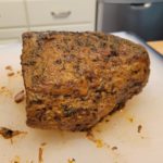 Sprinkle the eye of round roast with my Roast beef rub (Rex’s Beef Roast Rub).