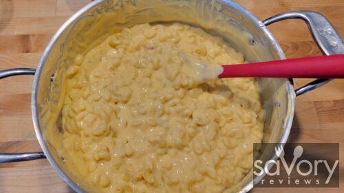 To expedite the creation of this mac and cheese, make sure to have all of the ingredients pre-measured and ready to go. This includes cubing the velveeta cheese. I have found that it is way easier to cut the velveeta after it has been chilled in the freezer for 5 minutes.